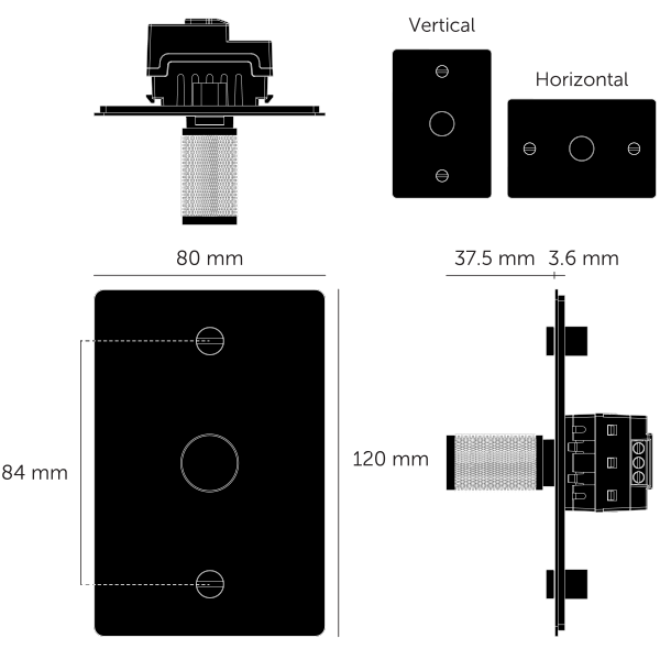 The dimmer comes with our new dimmer module with improved performance. This modular dimmer switch is designed for vertical installation, and the components will be delivered in separate boxes.