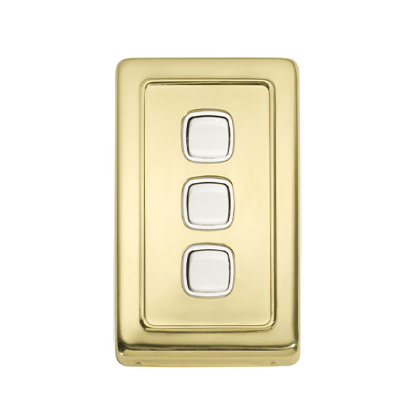 Flat plate 3 gang rocker switches with brass covers