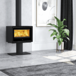 Its large glass front provides an unobstructed view of the flames, enhancing both ambience and efficiency. The advanced combustion system ensures a consistent, clean burn, maximising heat while minimising fuel use.