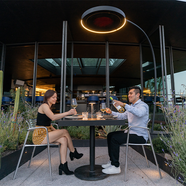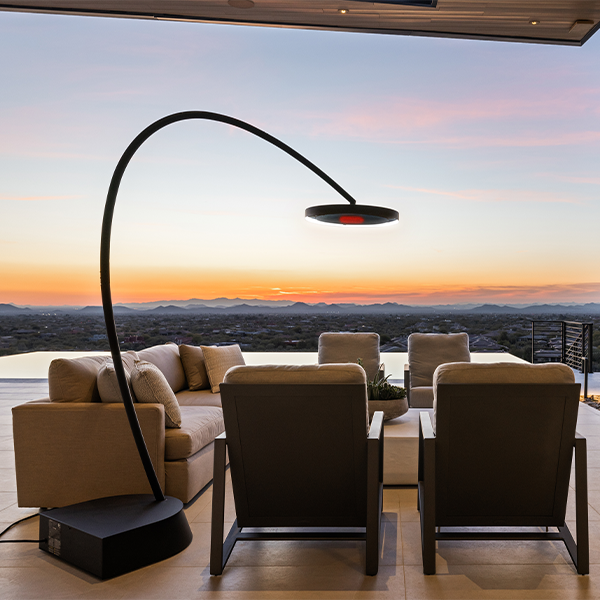 The freestanding, Eclipse is a powerful electric outdoor heater that brings radiant warmth, light and style to design-focused outdoor spaces. This freestanding electric outdoor heater incorporates ground-breaking heat transfer technologies that result in a high-efficiency outdoor heater and dimmable LED light unit with minimalist, yet striking design aesthetics.