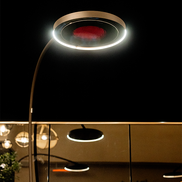 Incorporating ground-breaking heat transfer technologies that result in a high-efficiency outdoor heater and dimmable LED light unit with minimalist, yet striking design aesthetics.