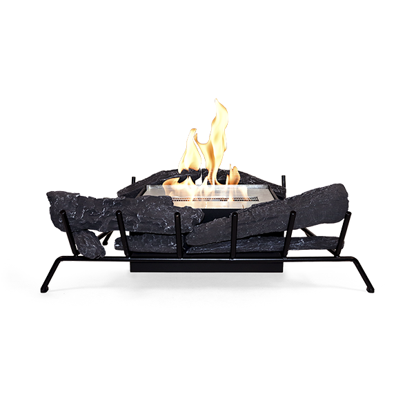 Authentic traditional aesthetic – Formulated for use in ventless ethanol fireplaces, e-NRG Fire-rated wood logs and iron grate design create a classic fireplace look.