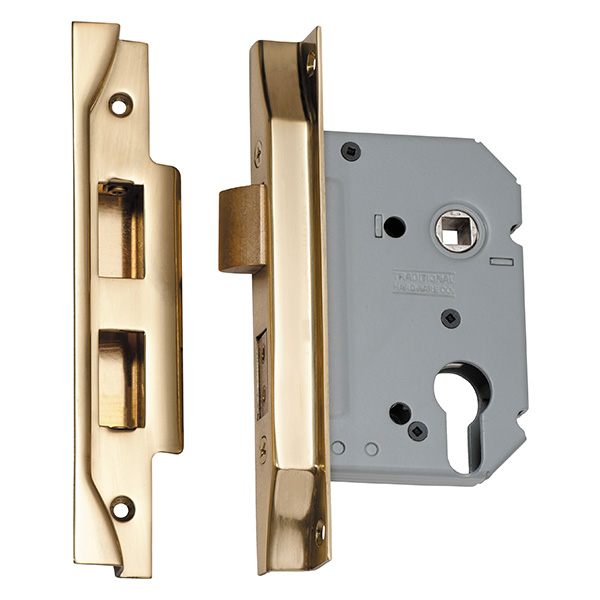 Rebated high security euro mortice lock for external applications.