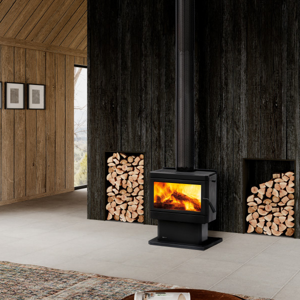 With an impressive 20% greater viewing area than traditional wood heaters, and a handy fire-wood storage area at its base, this unit is perfectly proportioned for visual pleasure and functional convenience.