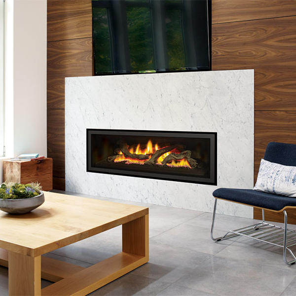 The Regency Greenfire™ GF1500L provides an immense linear view of the Regency’s leading flame and log package.