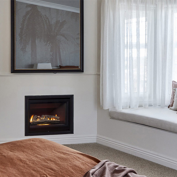 Rinnai’s Gas Fire range is all about design – featuring a wide viewing window, minimalist frames, and a roaring flame pattern.